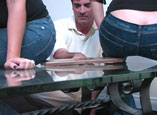 | You're invited to come in and witness what it would be like to be a tiny man being squashed flat under the tremendous pressure of a big beautiful giantess's bulging butt! We start with the foxy fraulein, Jacqueline , who is wearing a pair of tight dark blue jeans and a sexy black leather top. Using a poor slaves index finger, she is demonstrating what it's like to be a tiny man caught under a cutting board while feeling the full force of her enormous full sized fanny. Mistress Chloe enters the scene in her dazzling blue jeans, and they subject their slaves aching finger to a full force finger flattening seesaw ride! Next Dahvia's bustling blue jeaned bottom bears down on a strong brown board, flattening an assortment of lush juicy fruits, before inviting Mistress Chloe to take teeter-totter tail trample over the index finger of their skivvy servant. Then join sexy Sabrina, in her booty filled blue jeans, as she pins down the feeble finger of a sorry serf, before Chloe comes along for a butt bashing blow out on some clear plastic party cups. Finally, Chloe dangles her dark jeaned derrière over snails and crickets. Putting down the pressure, she pulverizes and decimates her crunchy quarry. 60 min. |