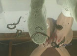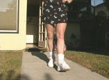 tops stomp and squish all kinds of bugs. She wears white socks and a short