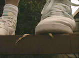 skirt, and her deadly sneakers. She stomps all kinds of worms , crickets
