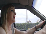 from the open driver's door. Getting really angry now, she says