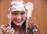 | CeCe is about to spend the next half hour having fun getting down and dirty. She has a table before her filled with brownie mix, chocolate syrup, and whipped cream filled pie tins, so she jumps in head first by pouring the sticky brownie mix on her head and stealing a yummy taste as it dribbles down her beautiful face. One by one the delicious ingredients are piled high on her head and mashed into her beautiful raven hair. In the end, she can't resist hopping onto the table and rolling around in the slippery, sugary treats! 30 min. |