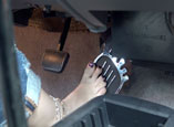 car gives her trouble. She has anklets on, and a fancy foot-shaped pedal