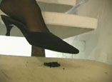 shoe squeezing. Her weight easily flattens them all. Next, she brings