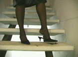 weight. Her feet want to feel more crunchiness, so she slips off her