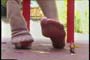 cigarette and Alicia takes off her shoes and kills a few in her tan stocking