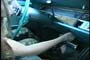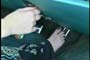 Madeline behind the wheel of the Imperial trying to pump it with her bare