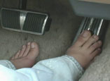 toes as she cranks the engine while pumping the large gas pedal. The car