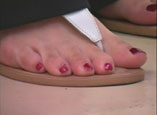 Veronica has on a pair of thong sandals and is anxious to hear the sounds