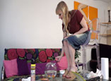 writhing millipedes inch by inch. Then she is on the glass table with an