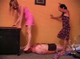 sexy goddess pantyhose covered feet and trample him with their stocking