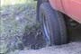 off the dirt road again, only to find her wheels wedged again! This time,