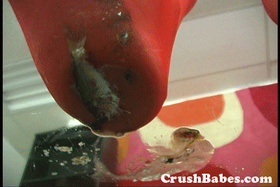 Asia and Chloe crush goldfish in stockings. Underglass views. 2 min. $3
