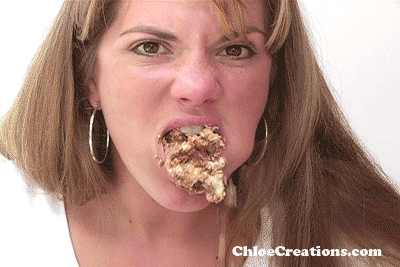 Mya's cheeks are bulging with food as she stuffs hamburger, crackers and chocolates just to chew it all up and spit it out. 2 1/2 min. $4