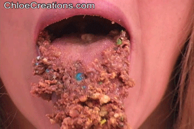 Mya's mouth is full of mashed up food. She opens up wide and sticks her tounge out for you to enjoy. 2 min. $3.