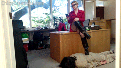 Mistress Chloe's office slave licks the soles of her black knee-high boots. Then the camera switches to POV so you must lick them too! 2 min. $3.99