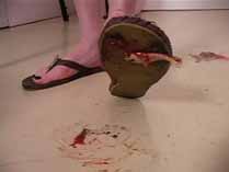 | 3 ladies step up to the bathroom scale. Each one steps on to reveal how much crushing power they can exert with one foot. Wearing flat sandals and thong panties, you don’t even see the mystery crushers faces. All you see is their destructive feet and leg muscles twitching as they crush. Each lady demonstrates her power on individual bugs sealed in bags. They start with crickets and move onto tarantulas, roaches, and scorpions. The first step is taken and the mess revealed, then the bug is twisted into oblivion while you pan up their luscious legs. Next, each girl has a bug on the floor and is given the same treatment. Shrimp, snails, goldfish and millipedes are crushed to goo. Each girl shows her arm strength by crushing a cricket in her powerful grip. For the finale, they place a tarantula under a board, and all 3 girls stand on it, showing just how flat he becomes. 30 min. |
