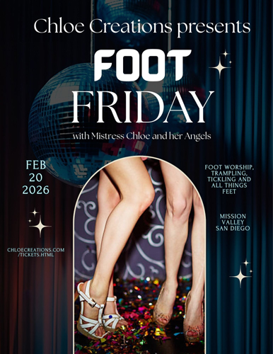 Join Mistress Chloe and her Angels on Friday, February 20, 2026 for Foot Friday!