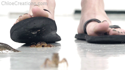 Snowflake crushes several crawdads wearing flip-flops, then shows off the soles of her shoes. 2 min. $3.99