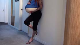 Her belly is huge and swollen after a few snacks, so she appears pregnant.