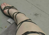legs. She feels something tickle her foot, so in a panic, you hide in