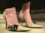 see her removing her strappy sandals and relaxing on the sofa. You inspect
