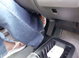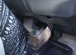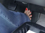 toenails as she uses her foot to pump the gas pedal. The car is taking