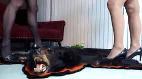 | Mistress Chloe and Madam X arrive home, dressed in their business attire, complete with pantyhose and pumps. There is a bear skin rug on the floor, that they totally disregard and walk all over with their high heels. Then they get comfy on the couch and start to dangle and dip their pumps as they talk about how wealthy they are. The ladies eat some fine cuisine, and discuss the work project they have been assigned. Their boss wants them to have sympathy for the poor in the world, but the ladies feel they are so far above it. They brag about their wealth while you get a sexy show of their legs and feet. They start looking at photos on the internet of starving people, and mock their plight. They devise an evil plan to end homelessness by murdering them all, and have a great laugh at how evil they are! 60 min. |