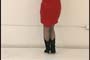| Carmen is modeling a racy red dress, black fishnet stockings and black strappy high heel shoes. She turns around to display her calves and transfers her weight back and forth from one foot to the other. Carmen then tries on a pair of black suede boots also seen from a rear angle view. She lifts her foot to rest it on a small table at her side and also sits in a chair crossing her legs while we watch the skirt of her dress push up to reveal her sexy garter belts. Finally we see Carmen again from behind as she stands in black sling back pumps. Maxine is your model for the last half hour wearing the same black suede boots that Carmen had worn. She has on a short red leather mini skirt that flaunts her garter belts and black fishnet thigh highs. First she is seated in a chair and then stands to her feet. She also rests her foot on a small side table showing off a lunging position and shifts her weight from side to side. For the finale Maxine models her favorite black pumps with a metallic heel all while we look from a back side perspective. A leg lovers dream. 60 min. |
