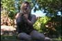 is lying in the grass, fast asleep. She wakes to find herself completely