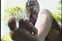and takes great pleasure in crushing them out under her feet and squeezing