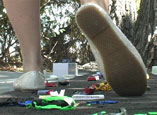 | The destructive giantess, Dahvia, is on a rampage and nothing is safe. She walks up to a small town, wearing a short form fitting black dress and a pair of white sequin flats. She begins walking through the streets seemingly unaware of all the destruction she's causing. Her gorgeous flats come crashing down, crushing cars and leveling buildings. She only takes a break to change her shoes a couple of times. She carelessly crushes using her black flip flops, a pair of black sling back mary janes, and even comes back bare foot to finish off the pathetic town. Order now and get a floor level view of all the action and watch as her peach painted toenails come dangerously close to crushing you as well. 45 min. |