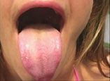 | Dallas is wearing a very skimpy pink shiny bikini. She licks her glossy pink lips and opens her mouth wide to show you exactly where her victims are going to go. She places her first gummy bear prisoner on her tongue and flips him back past her uvula and down her wide open throat. She then parts her lips and opens her mouth so you can look down to her hungry gullet. After she has done the same with all 7 gummy prey she gulps down 2 large glasses of water as you listen and watch her throat work. Dallas then walks to the sofa and lies back for an up close view of her belly in action as it sloshes the water and digests all the helpless victims. 30 min. |