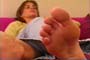 a long day and slips off her sneakers and her sweaty socks. Her feet are