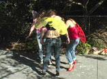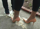| While taking a stroll through a magical land, Cathena, Minx, and Torrance find themselves caught in some sticky troll bubblegum! Using their magic powers, they change back into their true selves and teleport out of their sticky situation. Cathena is a sexy fairy, Minx is a be beautiful bee, and Torrance is a lovely lady bug. Before long, they are once again caught in a gooey mess. To their horror, they notice a giant spider coming towards them! The spider squirts his sticky goo all over their sexy pumps! Minx manages to get away and goes for help, only to be caught in a giant piece of flypaper! In the second segment Betty, Diana, and Snowflake are dropping off their contest entry forms in a drop box. Little do they know that some pervert has placed sticky bubblegum right in front of the box! Angry about ruining their sexy pumps, they go to change their outfits and forget to drop their entry forms in the box. After a while they return. Distracted and in a hurry they again step in the gum and ruin another pair of their sexy pumps! Segment three showcases Cathena, Minx, Kitty, Kendra, and Angelique in various sexy Halloween costumes! Only, instead of treats, they only get tricks. Come in for a close view as their sexy pumps get stuck and squirted with tons of sticky goop. In the final segment Edie is on a pay phone talking to Minx when she discovers that her sexy pink pumps are stuck in bubble gum! We see Minx on her cell phone as she exits her car and sinks her pumps right into two big blobs of sticky bubblegum. Minx is now running late for the party, so after changing into her costume she decided to take a short cut through the woods, where she is scared by a giant cockroach and runs right into the web of a giant spider! What will happen to our super sexy Santa? 35 min. |
