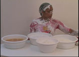 | Annalise is smoking her delicious cigarettes in front of a table filled with shaving cream pies. Not one to let a good pie go to waste, Annalise smashes her face deep into the first pie and lets the fun begin. For the next hour she will work her way through each and every pie, dumping sticky fluff on top of her head and packing it with some fluffy flour to make sure it sticks. Liquid peanut butter drips down her face mixing with the fluff to create a beautiful swirled mess before she finishes it off with a box of light and airy cake batter. 60 min. |