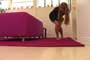 stocking feet, and others meet their fate under her flat strappy sandals.
