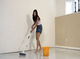 quickly realizes it as the bottom of her shoes have Teflon on them. They