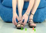 her feet as she strolls around in her flat gladiator sandals. She is seeking