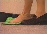 toes around on the floor, locate the object Tania has placed there, pick