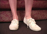 sexy pair of white pumps and is wearing them, or shall we say her, all