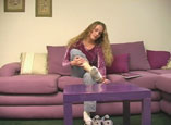 | Mistress Chloe is excited to find the perfect pair of shoes to compliment her sexy, black party dress. Unfortunately she has way to many shoes and needs your help to decide. You watch as she slides her world famous soles into various pairs of sexy mules and strappy sandals, making sure to select only those that accentuate her pretty, pedicured toes. Before long she notices a mysterious bulge in your slacks and is shocked! You come across as very prim and proper so she had no idea you were such a foot freak! Seeing the effect she has on you, Chloe commands you to your knees and forces you to kiss her enticing toes. With your bulge about to tear through your pants, Chloe tells you to take out your cock and spank it for her while you suck on each and every toe. She continues her sexy show until you beg her to let you blow your hot load all over her sexy feet! In the second segment, Daisy returns home from a long day on her feet wearing thick, white socks and heavy running shoes. Her feet are killing he so she removes her socks and shoes and props her size 9 ½ feet on the coffee table to air out. You have the perfect perspective as you gaze upon her sweaty feet while she tries to relax, massaging the kinks from her poor, tired, soles and wiggling her pretty toes.