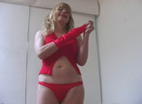 her sexy butt over them, wearing only a tiny red thong. She then turns