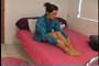 see her pantyhose legs in strappy high heel sandals. She teases you some
