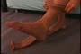 her toes, rubs her feet and legs to make a sexy whispering sound,