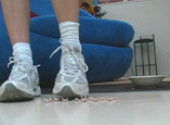 | Jasmine learns that you have been cheating on her and invites you over for a sexy surprise. She is wearing a tiny pink mini and sky high Lucite heels as she whips out her gun and shrinks you down to a teeny man. Threatening to eat you alive, she opens her mouth wide and removes her shoes to better feel your bones crack under her weight. You skitter away, but she quickly catches you. In the second segment, Mistress Chloe arrives and tells you she is going to take over your army. She seduces you with her sexy gams and enticing toes that peek out from her patent pink pumps. The more turned on you get, the smaller you shrink. Before long you are barely a few inches tall. You are hoping your army will save you but Mistress Chloe just laughs and takes you to their shrunken camp. They too fell victim to her seductive shrinking powers. She swallows the general whole and threatens his cadets with her stomping soles and inviting mouth. By the end of the day, nothing remains but the mutilated bodies of the victims that were not swallowed alive. In the final segment, Jasmine finds a bowl full of mini men who are the perfect size to worship her ripe, sweaty feet. She lays her victims on the floor and tempts them with her well worn sneakers before removing her shoes to expose her sweaty, smelly, sock covered soles. Her massive foot hovers over the helpless bodies before she removes the wet socks to reveal her rank bare soles. She drops a few into her socks and walks around for the day before returning to finish off the remaining little slaves. 35 min. |