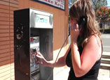 Ruby walks up to the payphone
