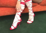 | Chloe stumbles home from a fabulous party. She had such a good time and was sure everyone loved her outfit. Chloe is wearing a very short red velvet dress and red striped tube socks with red strappy high heels that lace all the way up her legs. It gets Chloe very excited to dress so sexy and tease all the men. She realizes it’s her sexy shoes and socks that really get them going. Chloe knows they all wanted to come home with her and adore her feet and legs. She lies back on the couch and runs her fingers over her soft dress and then up and down her long gorgeous legs. Chloe begins to fantasize and wishes there were someone there to worship her feet. She becomes very aroused and longs for a sock slave to worship her but she will have to please herself with just the thought of him there. 30 min. |