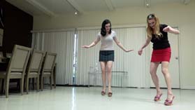 pedestal where the girls are practicing. Holly steps right into the sticky