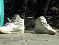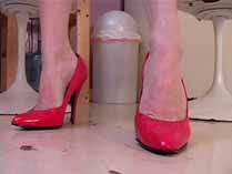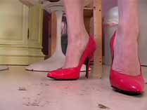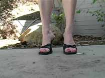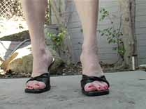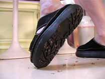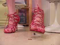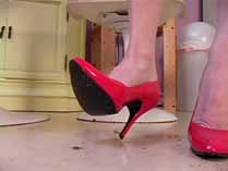 | Mistress Chloe can’t get enough of crushing David. She transforms him into so many different bugs, and crushes him in so many different ways. She starts out smearing him as a waxworm into the treads of her Reebok hightops. Then she wears some platform leopard sandals and crushes him as a snail over and over again until he is just a bunch of smear spots on the patio. She is mad as hell, and crushes him as crickets wearing her heavy soled open toe flats. She stomps his body hard into her sandal treads. Wearing stockings and open toe high heel mules, she uses his worm body to shine her shoes, and crushes piles of worms under her shoes. In her red pumps, she crushes crickets and waxworms, both with stockings on and without. She even slips off her shoes to grind the greasy bodies into the floor barefoot. She has fun smearing and stomping more crickets wearing her platform shoes, red strappy high heels, and her black high heel mules, humiliating and degrading her victims the whole time. 100 min. |