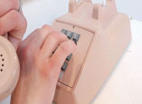 Snowflake having a little phone fun. She is dialing a push button desk